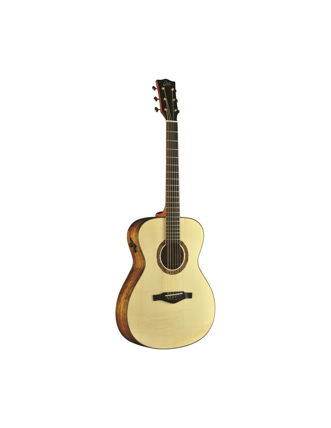 La Wow A800e SK si presenta in colore Natural con finitura Gloss, con forma Auditorium. La combinazione di Abete Massello sul top e Koa Massello su fasce e fondo, frutto di una ricerca accurata, regala a questo strumento uno spettro timbrico molto ampio e sempre ben equilibrato su ogni singola corda. Caratteristica decisamente importante è la presenza di un sistema di amplificazione molto performante, il Fishman Flex Blend: formato da piezo e microfono a condensatore interno, questo sistema permette di cogliere ogni sfumatura della chitarra grazie alla possibilità di aggiungere gradualmente al segnale del piezo il segnale ripreso dal microfono, tramite un potenziometro “blend”. Tra i controlli, oltre al Volume di uscita e al blend, sono presenti un accordatore a display (attivabile premendo il potenziometro del volume) e un controllo EQ che lavora in modalità “mid-scooped”: tenuto al minimo il segnale non viene equalizzato (flat), aumentando si vanno a ridurre gradualmente le medie frequenze in favore di basse e alte, molto comodo per ottenere un suono già “pronto” per il mix. Nel caso in cui la chitarra dovesse avere problemi di feedback, situazione molto comune nell’ambito acustico, è possibile invertire la fase premendo il potenziometro dell’EQ. L’insieme di tutte queste caratteristiche rendono la Wow A800e SK uno strumento adatto in contesti professionali, sia in studio di registrazione sia sul palco.