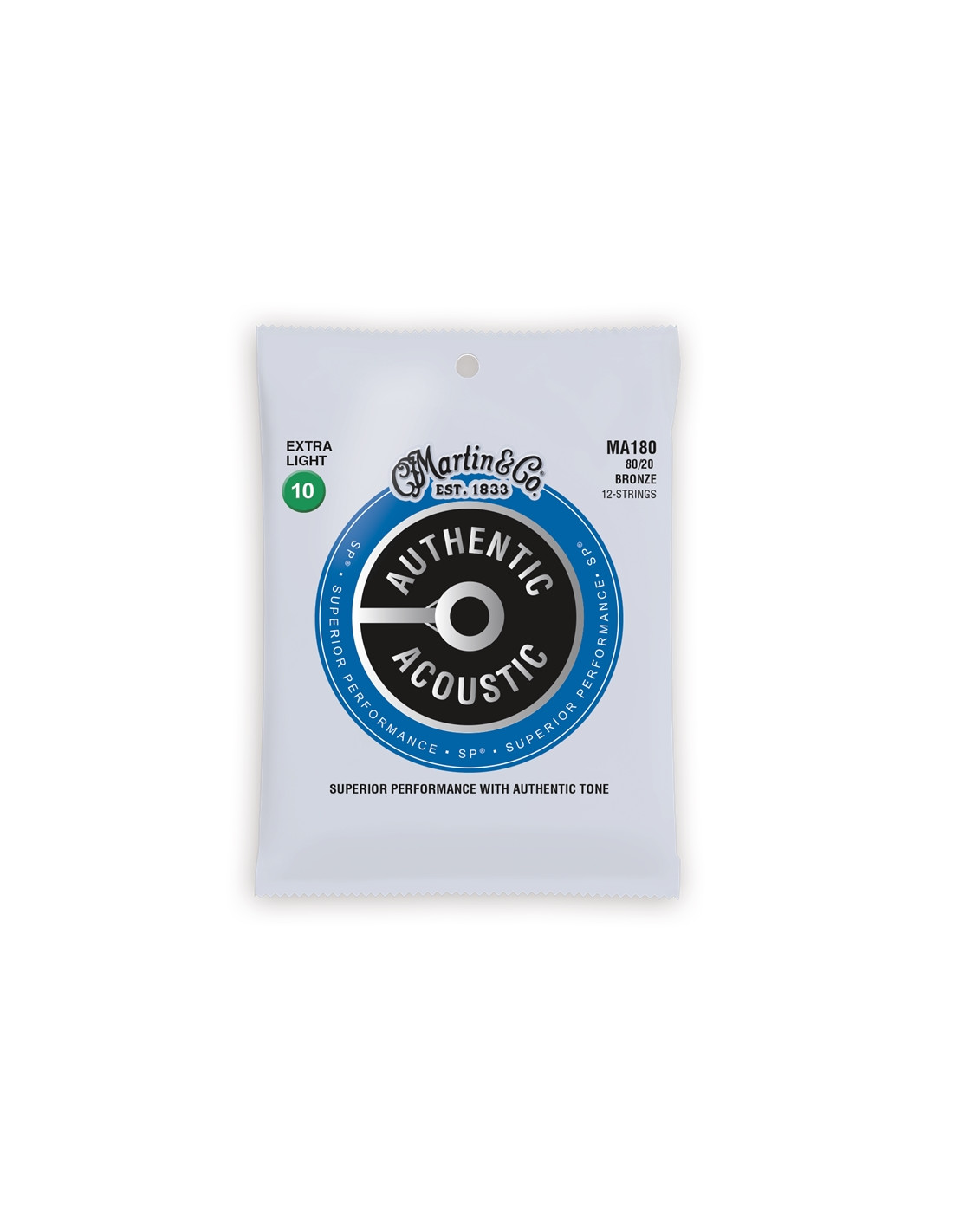 Le corde per chitarra acustica 12 corde MA180 di Martin & Co della serie Authentic Acoustic SP® sono composte da un avvolgimento in Bronzo 80/20 di alta qualità su filo ultra resistente alla trazione e alla corrosione. Offrono un timbro genuino ed equilibrato, stabililità di accordatura e grande suonabilità. MA180 in scalatura Extra Light presentano i seguenti diametri: 10-14-23-30-39-47 e 10-14-10-12-18-27