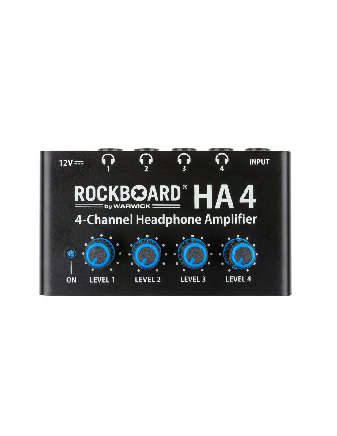 RBO E HA 4 - 4 Cahnnel Headphone Amplifier - Amplificatore per cuffie ultra-compatto a 4 canali amplificati in grado di distribuire il segnale di una sorgente stereo a quattro cuffie indipendenti - Ciascun canale ha un suo amplificatore ed un suo volume idipendenti - Compatibile con qualunque tipo di cuffia - Ideale per qualunque tipo di musicista - Design compatto e leggero - Chassis in alluminio - LED di stato - Controlli: 4x Volume - Ingressi: 1x Jack 6,35mm Stereo - Uscite: 4x Jack 6,35mm Stereo (Cuffie) - SNR: 82dB - Risposta di frequenza: +1dB/-2dB a 20Hz-22kHz - Alimentazione: 12V DC (Alimentatore incluso) - Colore: nero - Dimensioni: 102,0x58,0x45,0mm - Peso: 182g.