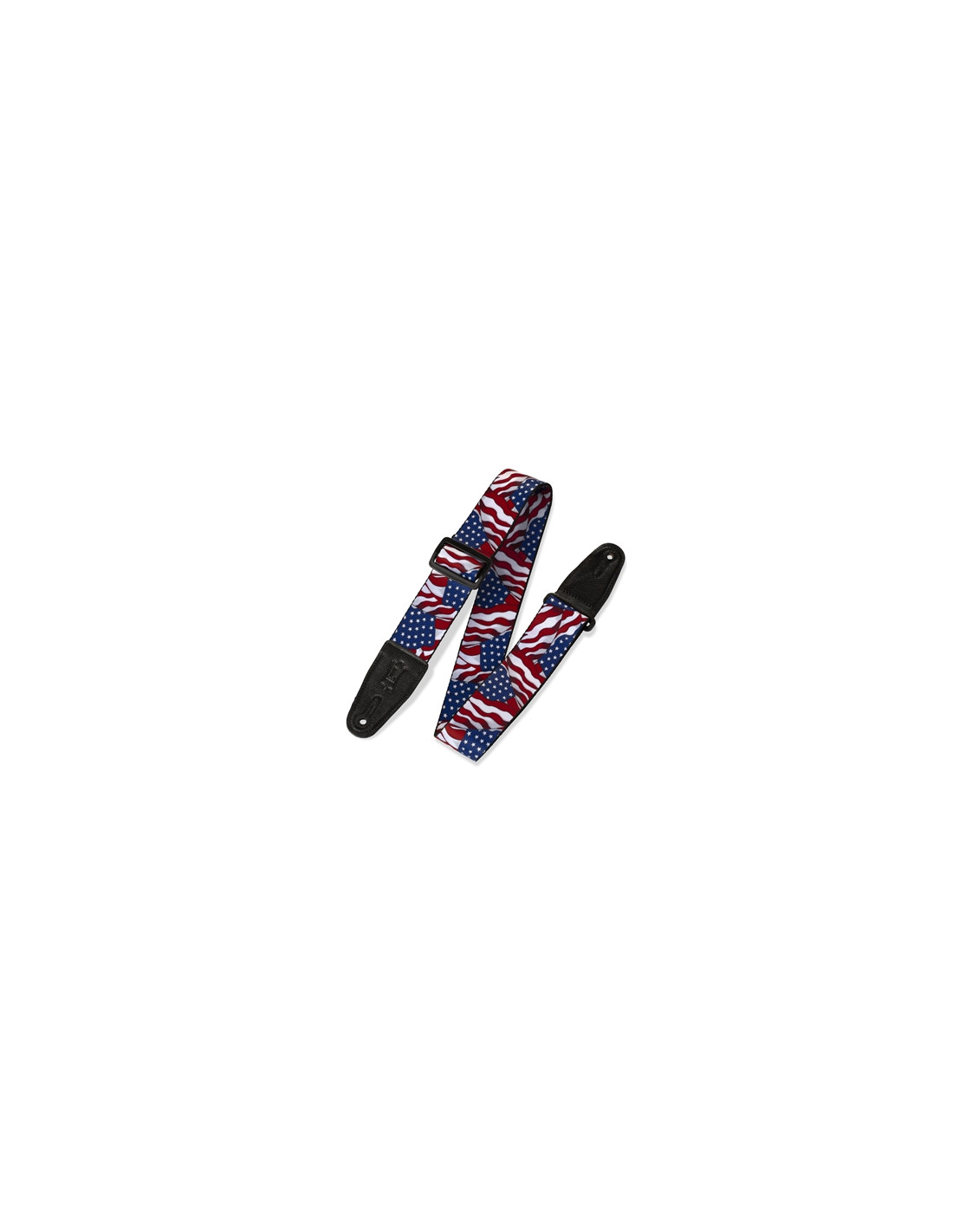 Tracolla in polyestere a singolo strato - Print Series - Particolarmente indicata per la chitarra - Larghezza: 2" - Lunghezza: regolabile da 35" a 65" - Tipologia di regolazione: slide and loop - Hardware: plastica nera - Materiale: woven polyestere - Attacchi: garment leather nero - Imbottitura: nessuna - Lavorazione: nessuna - Fantasia: Usa Flags.